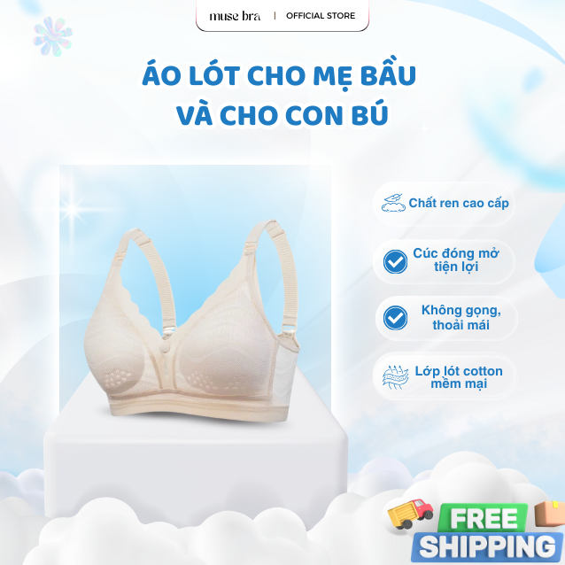 Áo Lót Bầu & Cho Con Bú Muse Bra Caring – Ren Mát Mẻ, Cúc Mở Tiện Lợi, Không Gọng, Chống Chảy Xệ