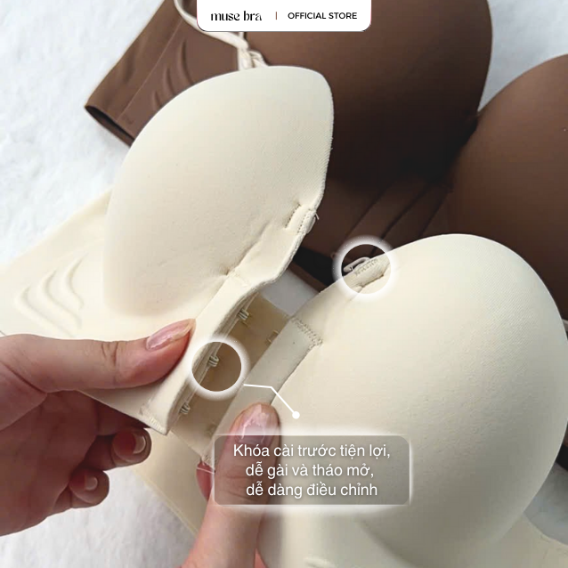 Áo Lót Nâng Ngực Cài Trước Muse Bra Pushing – Cúp Ngực Không Dây, Đệm Dày 5cm, Chống Tụt, Che Mỡ Nách